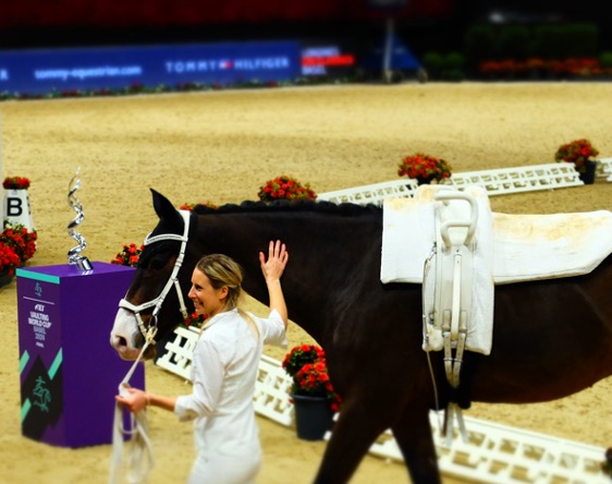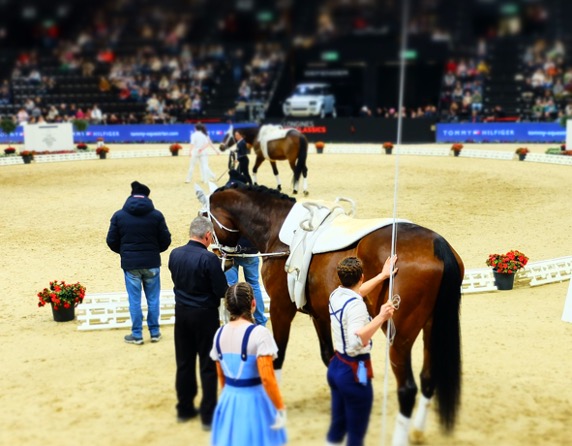 Bei den Besuchen am Donnerstag und Freitag hielten wir uns vorwiegend in der Vorbereitungshalle neben dem Stadion auf. Während es bei den SpringreiterInnen mit bis zu 15 Paaren oftmals etwas eng wurde, hatten die Dressureiter*innen für die Vorbereitung der Pferde auf den Grand Prix viel mehr Freiraum.