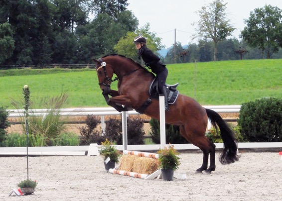 Beim Sprung über eine Strohballe – im L-Parcours an erster Stelle als «Sprung in die Prüfung» – liess sich öfters fehlende Ausbildung oder mangelnde Routine feststellen. Die Pferde waren stark beigezäumt und hatten dadurch keine Möglichkeit, locker über den Rücken zu springen.